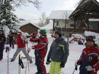 | 1月7日、クラブ員が最も楽しみにしている合宿がスタート。 初日の講師の先生は、毎年お願いしている長野県SAJデモの中村さんを含む男性3人、女性1人の計4人で、皆様、全日本技術選出場経験者という通常のSKIスクールでは考えられない豪華さです。 |