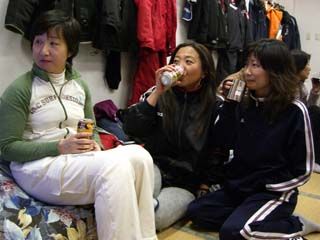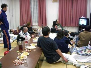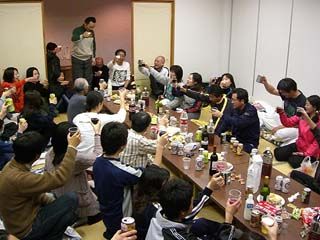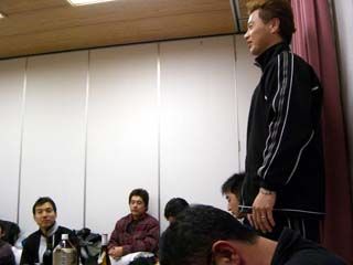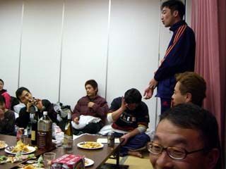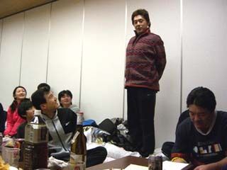 | 無事に検定も終了し、夕食後の懇親会の前に早くもビデオ上映会が始まりました。 |
