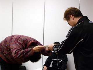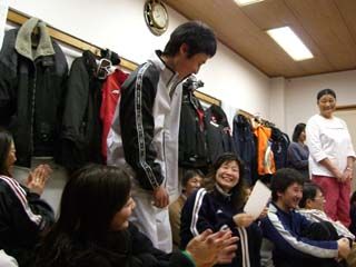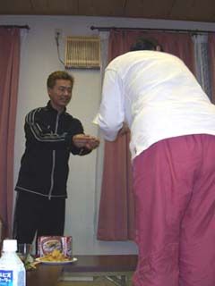 | 合格者に1人ずつ喜びの挨拶。 諒と鈴木和子サン。 |