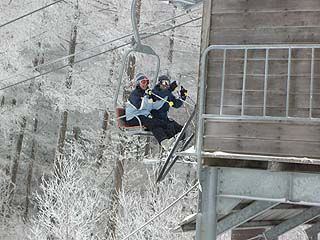 この日は夜のうちに降った雪でゲレンデは樹氷と新雪。