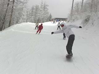一方、スノボーチームの方では、技の名前は分かりませんが板のトップ側を極端に浮かしてみる練習をしていました。
