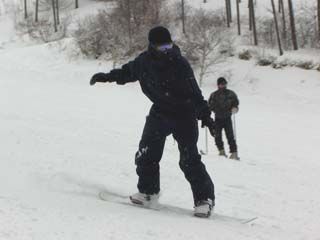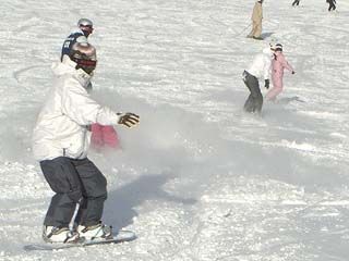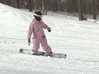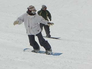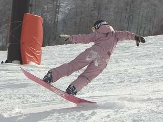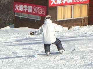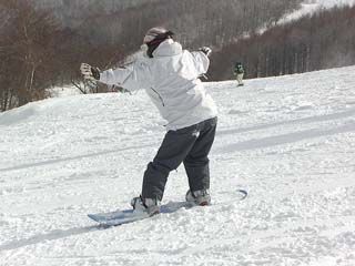 | まりサンの滑り。 スキー同様に上半身のヒネリも重要みたいですネ。 |