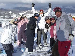 慌てて追いかけて山頂で合流できました。 「なんちゃってスノボー部」のメンバーと鈴木サン、◎ちゃんを入れて記念撮影です。