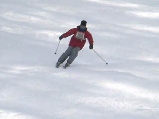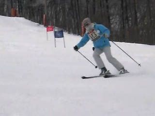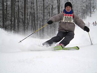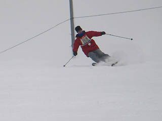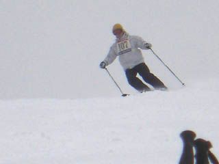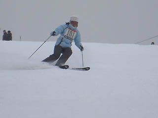 | 中斜面で1級の総合滑降の前走をする岸サン。 |