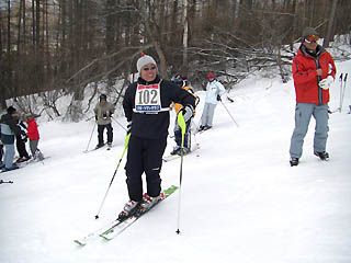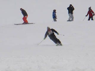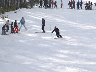 及ばずながら、じょんもお手伝い。 まずは中急斜面にてシュテムターンから・・・。 |