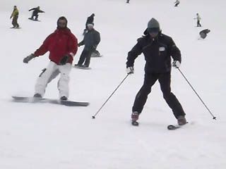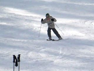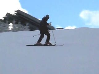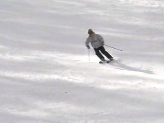 右ターンの時には頭を左に傾ける意識をすると、さらに谷側の脚を踏めるようになるのではないでしょうかネ〜。 |