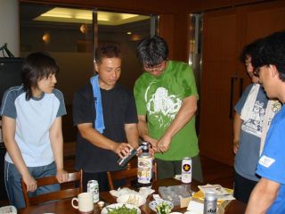 途中からゆたっくんと志村が焼きを担当。一見大変そうですが、焼きたてのおいしいところをみんなより先に・・・ |
