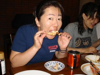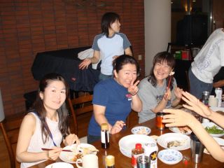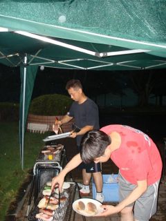 | 夕食はバーベQ。外は雨でしたが、広い食堂で快適でした。 |