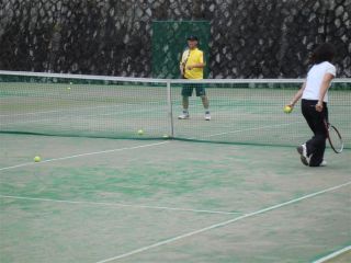 | ゆたっくんのサーブ。手前は吉田さん |