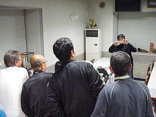 | 雪上講習、ビデオ講習、そして懇親会も終わりです。 講師の皆さんをお見送り。 |