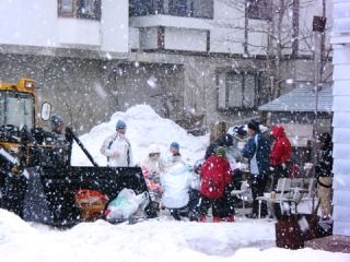 吹雪にもめげず、ひたすらパクパクもぐもぐでーす。