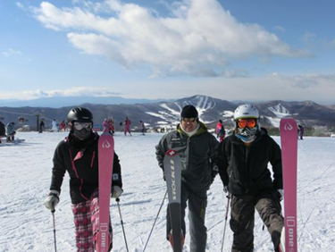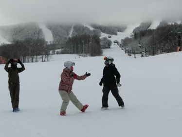 | お約束の集合写真! 雪もばっちりです。 | 美女?三人の準備運動? | ||||||||||||||||||||||||||||||||||||||