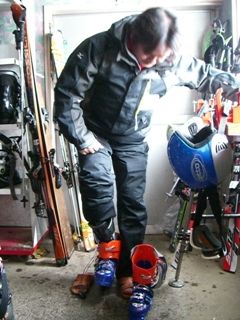 お腹が邪魔してブーツが履けません。だから言ったのに・・・。 |
